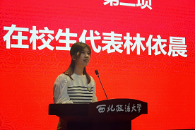 在校生代表、学院2022级本科生林依晨发言,林依晨从自己的经历出发,就新同学如何更好开启大学生活提出自己的建议:遇到困难,应鼓足勇气,直面挑战;面对未知,要大胆试错、尽情探索;受到挫折,应改进不足,乐观向前。她祝愿所有新同学们都能在未来四年怀揣对法学的热爱,坚定信念,超越自我,不虚此行。