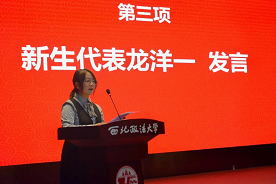 新生代表、学院2024级本科生龙洋一发言,龙洋一谨记严谨求实、文明公正的校训,对自己提出要求:以求实为准,勇敢面对挑战,冷静克服困难,以身为剑,展露锋芒;以文明为则,积极求知探索,发扬传统美德;以严谨为遵,在学习上谨慎,在生活中慎行;以公正为循,挥法律利剑,持正义天平。她希望在未来日子,与同学们共同进步,共创学院辉煌。