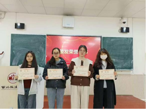 分享结束后,朋辈导师们为四六级打卡及读书打卡活动中获奖同学颁发获奖证书和相应奖品。