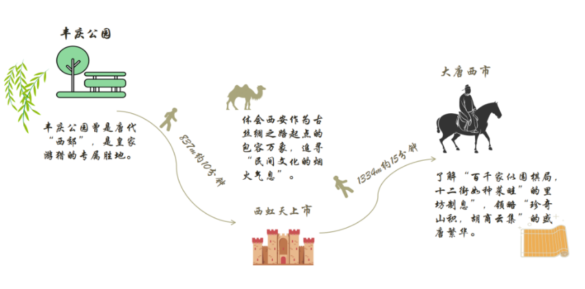此次代表队由yl23455永利官网2023级2班刘彭贺、王馨蕊、张诗雅、苏倩倩以及8班高冉、张敏瑶六位同学组成。此次选择“丰庆公园→西虹天上市→大唐西市”这一路线,渴望深入品味长安文化,感受独属于长安古城的历史记忆,奔赴这场春日之约!