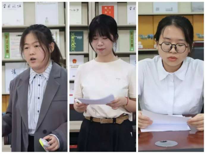 此次答辩会分为自我介绍与问题回答两个环节。答辩同学从专业学习、科研竞赛、实习实践等方面介绍了自己在大学中的成长与发展,围绕法学专业的“实践性”“逻辑性”“体系性”等性质谈论自己对法学专业的理解,结合自身获奖经验或对课题项目的研究分享法律学习的方法,并对奖金的使用分配作出自己的规划。他们表示若能获得本次奖学金,将会将其投入自身、学院以及社会的发展之中,充分彰显了法律人的责任担当。